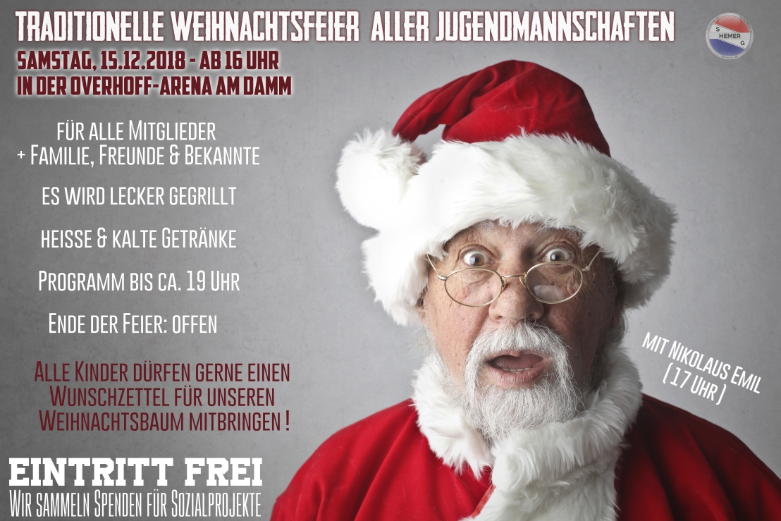 Traditionelle Weihnachtsfeier aller Jugendmannschaften | 15.12.18 – ab 16 Uhr