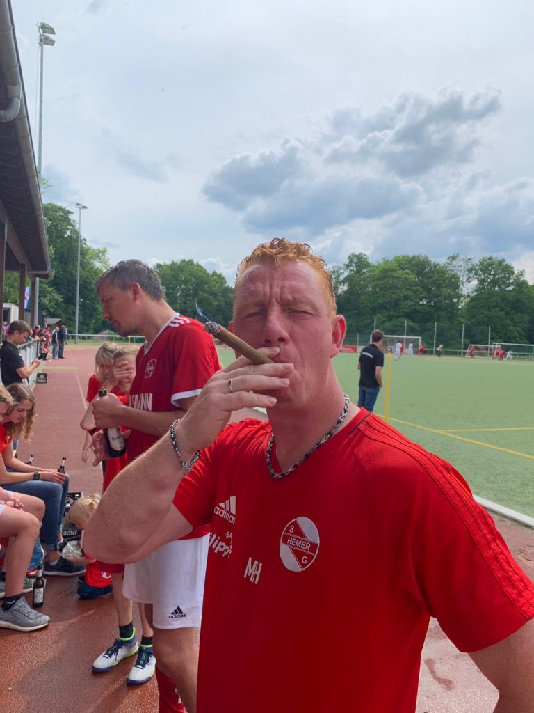 Genau diese Neun machten den Jungs unserer Zweiten das Leben saumäßig schwer. Sehr tief stehend und nur auf lohnenswerte Konter lauernd verteidigte Olympos mit Mann und Maus gegen immer wieder anrennende Hemeraner, denen die Nervosität hier und da deutlich anzumerken war. Und die Taktik ging auf: aus dem Nichts holte das griechische Team einen Elfer raus, verwandelte ihn und ging somit in der 26. Minute mit 1:0 in Führung. Ein paar Minuten später hatte die Zweite die Chance auf eine passende Antwort, denn der Unparteiische zeigte erneut auf den Punkt – diesmal allerdings auf der anderen Seite. Keitmann übernahm Verantwortung, schoss den Ball allerdings deutlich über den Kasten. Angefeuert von den Zuschauern, allen voran den Spielerfrauen und dem extra mit einer Limousine angereisten, befreundeten Team vom SV Bausenhagen, das ordentlich für Stimmung sorgte, gelang es Willi Schepper noch vor der Halbzeitpause mit einem Alleingang in der 39. Minute den Spielstand zu egalisieren (1:1).