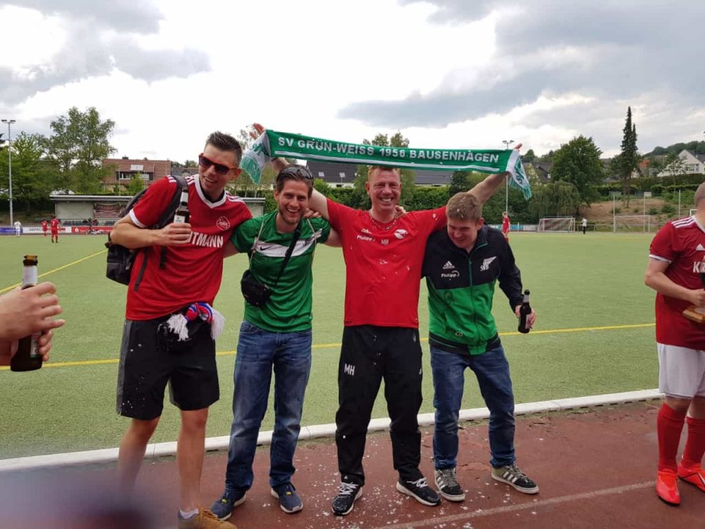 Nach der Halbzeitpause dauerte es nicht lange und die Zuschauer durften erneut jubeln, als Böttcher den Ball Sören Westig in der 49. Minute zum Einköpfen servierte (2:1). Fortan lief das Spiel weitestgehend nach Plan, bis zur 63. Minute, als Torwart Davin Werner in einer Kontersituation der Gäste ein paar Meter vor dem eigenen Strafraum einen Schuss mit der Hand abwehren musste. Diese Aktion wurde natürlich mit einer roten Karte quittiert. Da kein Ersatztorwart auf der Bank saß, schnappte sich Torschütze Westig die Handschuhe und sicherte von da an den Kasten. Seinen Positionswechsel hatte er sich mit Sicherheit allerdings etwas anders vorgestellt, denn bereits der nächste Angriff der Mendener landete in der 72. Minute irgendwie im Tor (2:2). Jetzt fasste sich die zweite Mannschaft ein Herz und es ging Schlag auf Schlag. Marc Ruberg köpfte seine Mannen nach einem Freistoß wieder in die Spur (75. Minute – 3:2). Kurz darauf sorgte Lukas Goseberg mit einem platzierten Schuss für die Entscheidung (77. Minute – 4:2). Das war ein Krimi mit Happy End. Im Anschluss wurde natürlich ordentlich gejubelt und gefeiert.