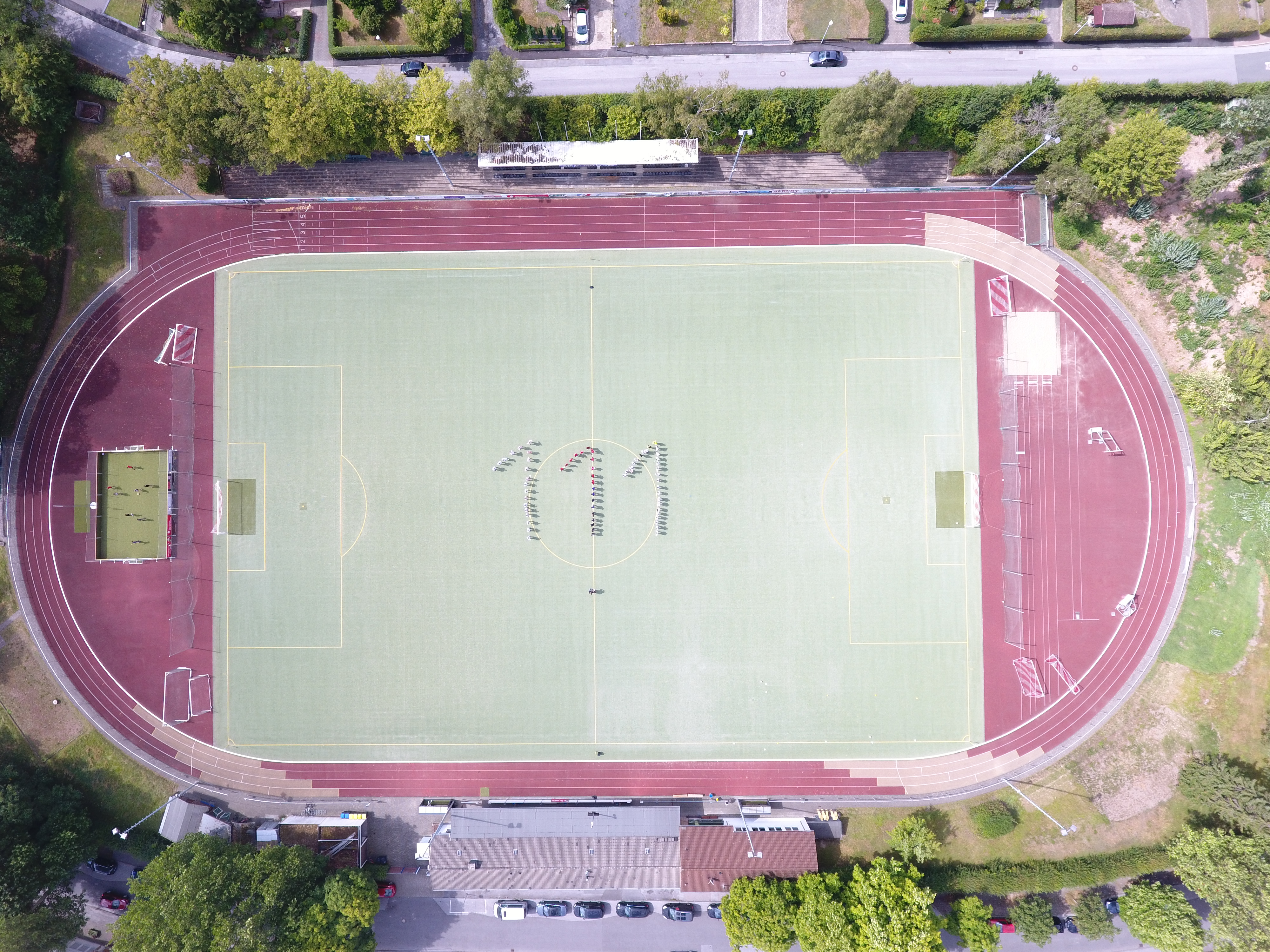 Anschließend wurde es etwas lauter im Stadion. Anlässlich des 111-jährigen Bestehens unseres Vereins hatte der Festausschuss sich ein besonderes Fotoszenario überlegt. Die Zahl „111“ sollte von einer Drohne aus der Höhe fotografiert werden. Hier das Ergebnis: