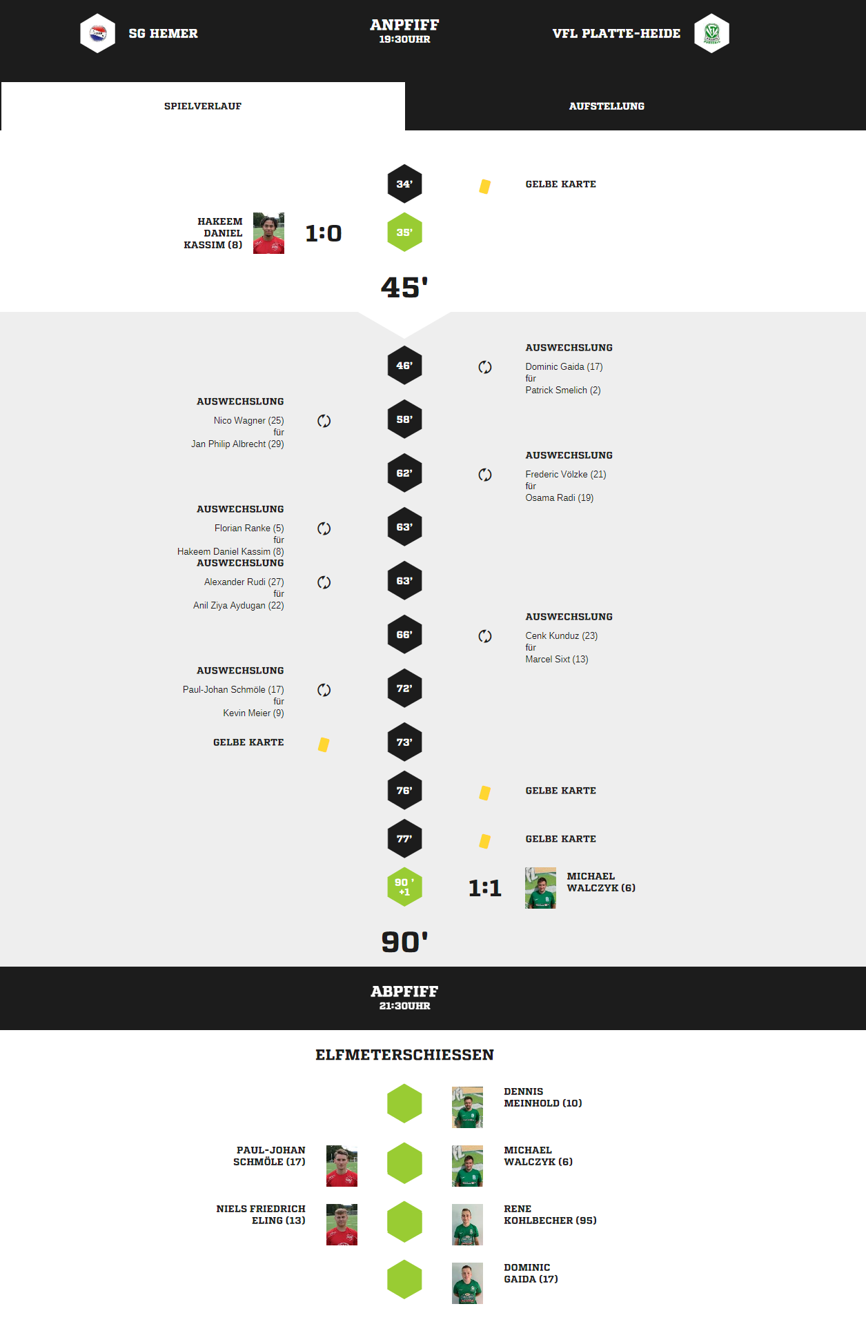 Unsere erste Mannschaft ist am Mittwoch Abend aus dem Krombacher Kreispokal 20/21 ausgeschieden. In der zweiten Hauptrunde unterlag sie dem VfL Platte-Heide mit 3:5 nach Elfmeterschießen. Dabei sah es lange Zeit sehr gut aus: Hakeem Kassim brachte sein Team in der 35. Spielminute per Kopfballtor nach Freistoß mit 1:0 in Führung. Den Ausgleichstreffer erzielte Walczyk erst in der ersten Minute der Nachspielzeit.