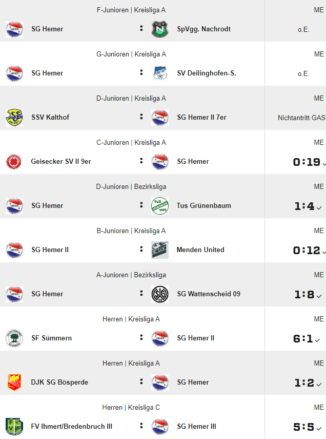 Hier sind die Ergebnisse vom letzten Spieltag: