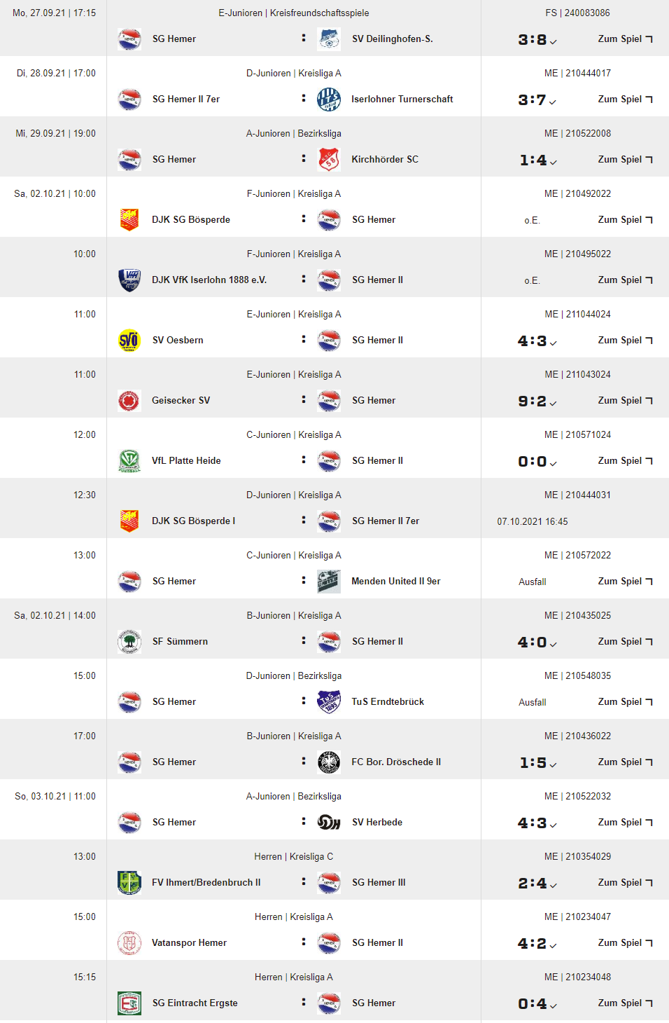 Hier die Ergebnisse der letzten Woche im Überblick: