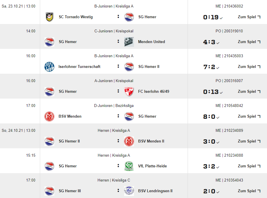 Hier alle Ergebnisse vom Wochenende: Hier die Highlights auf Soccerwatch: Erste besiegt VFL Platte-Heide Zweite holt wichtigen Dreier gegen BSV Menden II Dritte siegt im Topspiel der Kreisliga C gegen BSV Lendringsen II