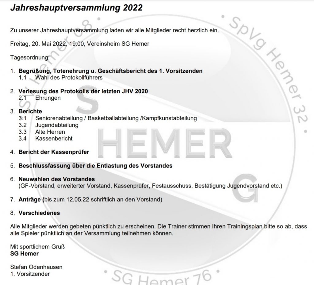 Jahreshauptversammlung am 20.05.2022