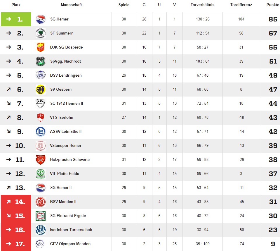 Die zweite Mannschaft bewies beim gestrigen Auswärtsspiel gegen die Spielvereinigung Nachrodt Nerven und siegte trotz des sehr frühen Rückstands mit 2:4. Durch die Niederlage der Konkurrenz aus Ergste schafft die Zweite erstmals seit 13 Spieltagen wieder den Sprung auf einen Nichtabstiegsplatz. Glückwunsch Jungs – weiter so! Der Abstiegskampf bleit somit weiterhin spannend.