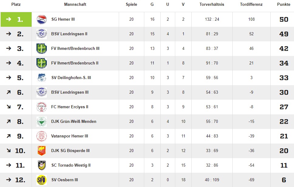 Die dritte Mannschaft kam beim SV Deilinghofen-Sundwig nicht über ein 3:3 Remis hinaus. Trotz drückender Überlegenheit und einiger Großchancen verpasste das Team es, schnell für Sicherheit zu sorgen. Die tief verteidigenden Gastgeber waren mit ihren gelegentlichen Nadelstichen per Konter und langen Bällen dagegen sehr effektiv. Der Vorsprung der Dritten schrumpft zwei Spieltage vor Saisonende somit auf einen Zähler.