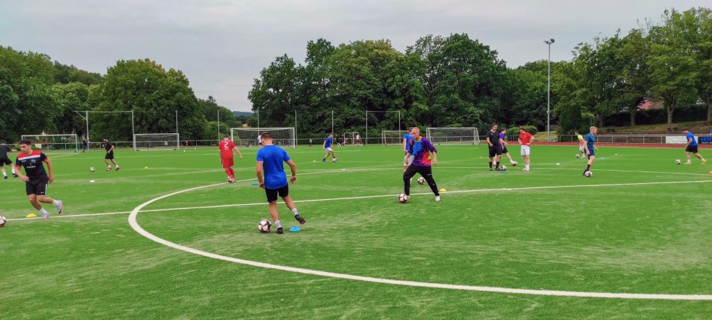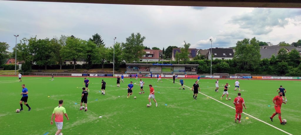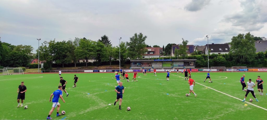 Es folgte eine längere – über den halben Platz verteilte – Fitness- und Technikübung.