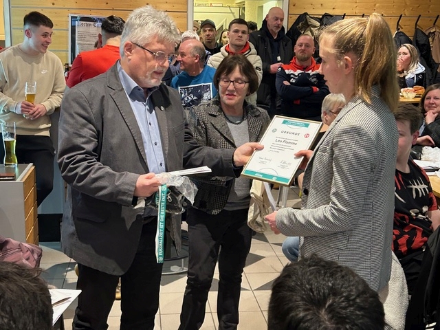 Mit dem DFB-Förderpreis „Fußballhelden“ wurde unsere Trainerin Lea Flamme für ihren Enthusiasmus und die tolle Arbeit im Bereich Kinder- und Jugendfußball ausgezeichnet.